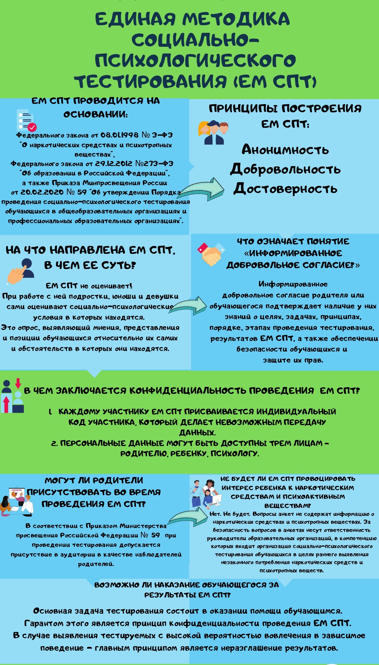 - принцип конфиденциальности: результаты социально-психологического тестирования доступны только учащемуся, прошедшему обследование, и его родителям (законным представителям);